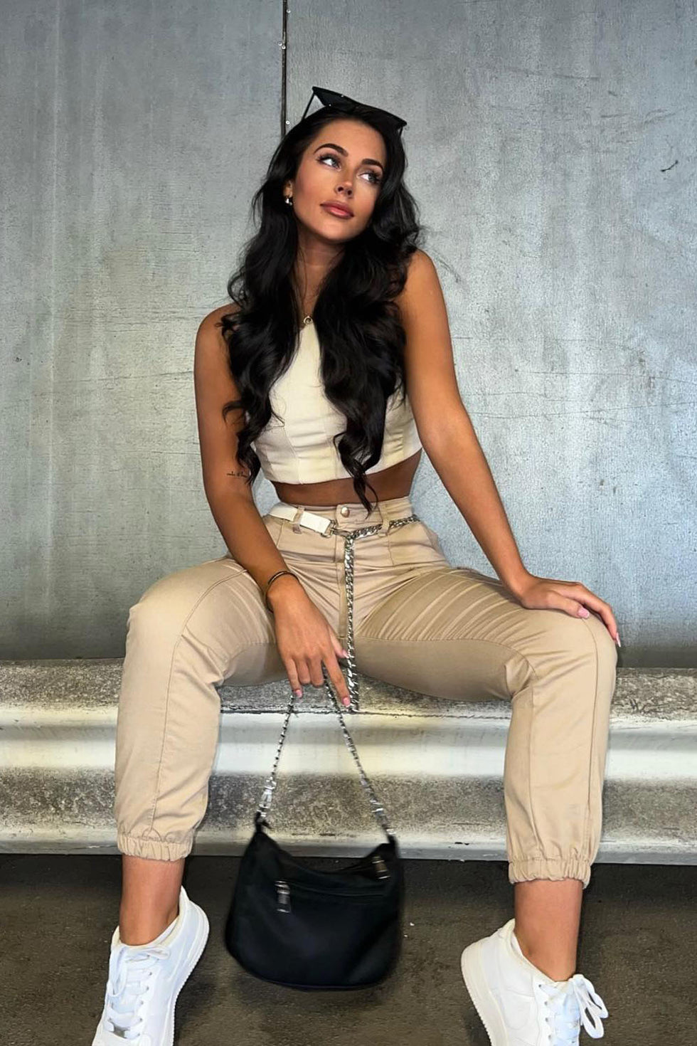 Pair these cargo trousers with a chunky trainer and a relaxed tee for a casual yet trendy look, perfect for off-duty days or casual outings.