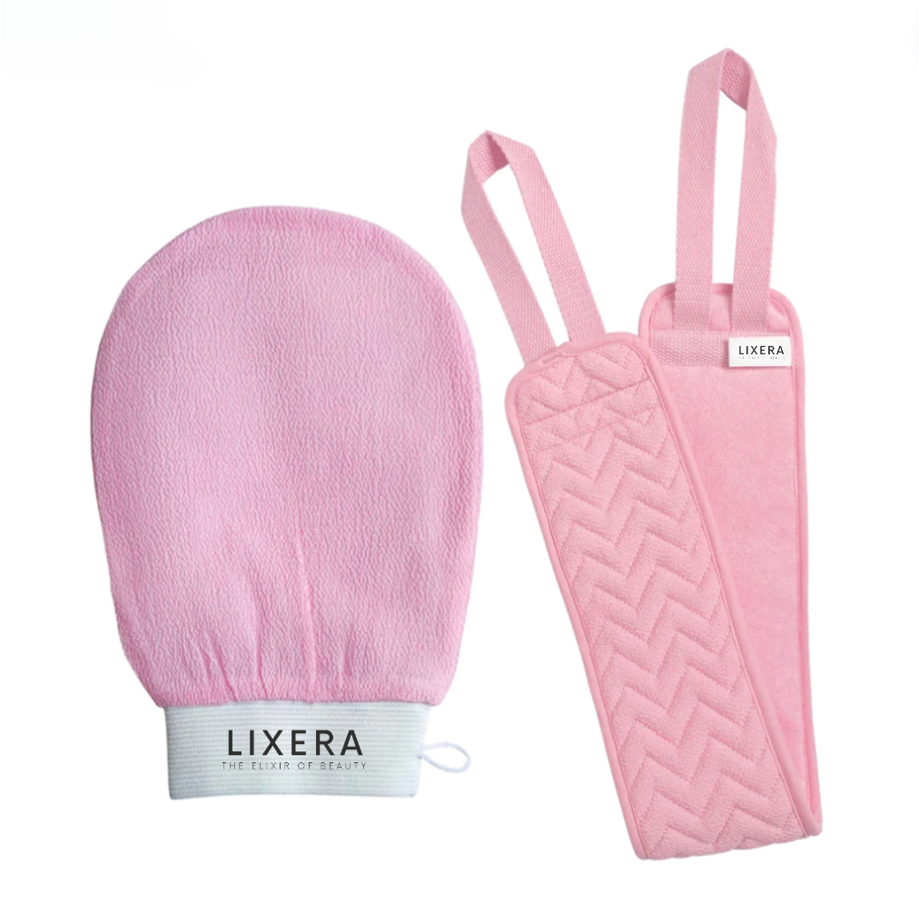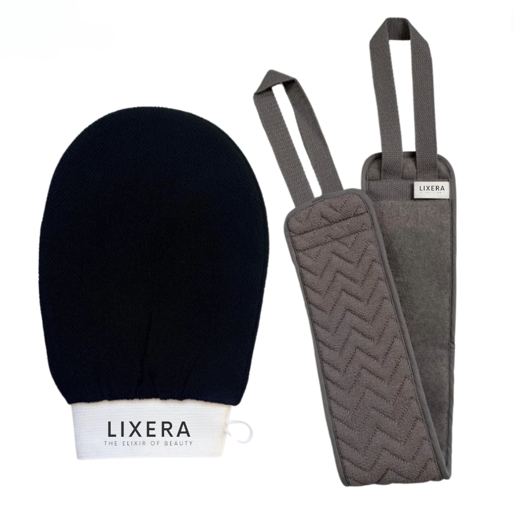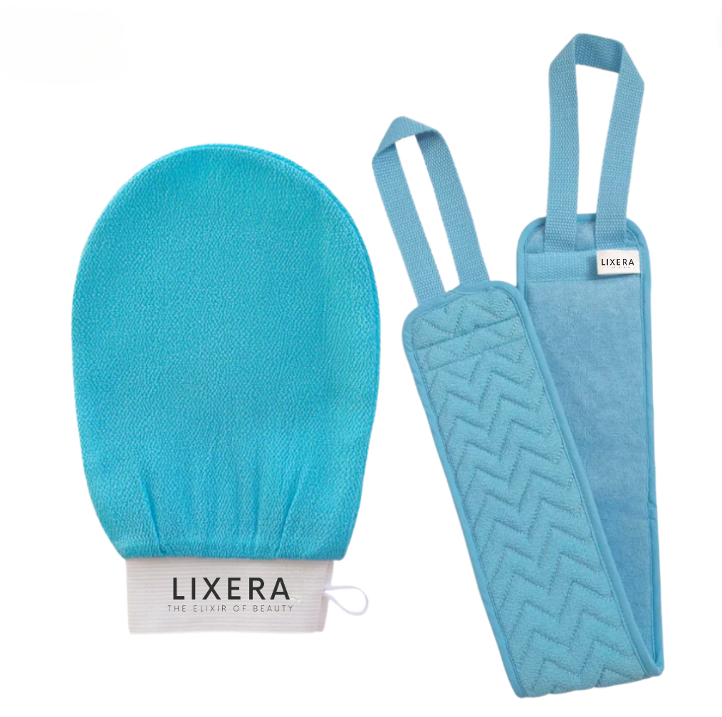 Included in this bundle are two of our best-selling products: the Exfoliating Body Glove and the Exfoliating Back Belt. Both of these tools are thoughtfully designed to provide a thorough and invigorating exfoliation experience.